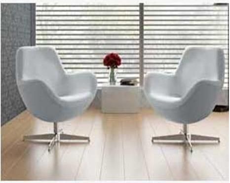 Poltrona estofada giratória com pé em alumínio e balanço.